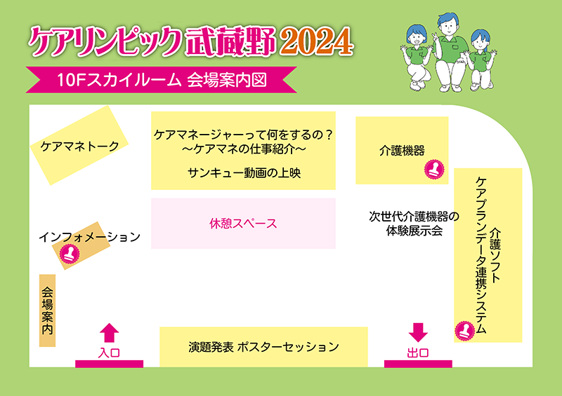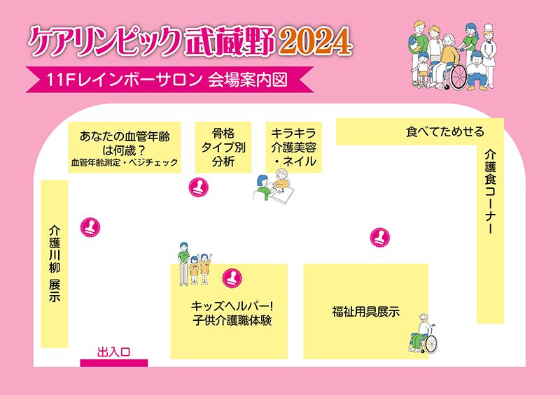 10階(スイングホール)と11階(レインボーサロン)のブースをめぐるスタンプラリーを開催します!いろいろなブースを訪れて、介護について「知って」「体験して」「学んで」スタンプを集めましょう!